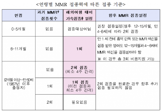 MMR 백신 권장 접종시기 : 일반적으로 생후 12~15개월, 만 4 ~6세 각각 1회 접종하는 것이 권장되지만, 만약에 홍역 유행지여에 살고 있다면 6 ~11개월 사이에 미리 접종하는 것이 전문가들의 조언입니다.